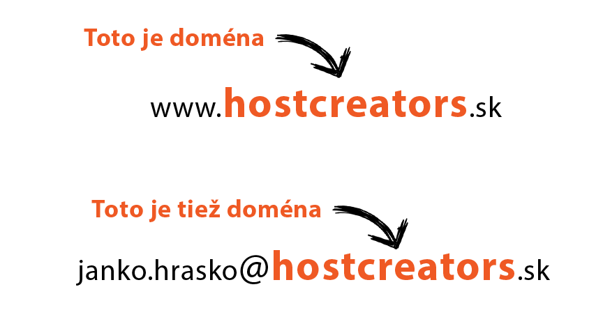 Každá doména prislúcha nejakej IP adrese (napr. 46.229.238.141). Nakoľko je pre človeka ťažké zapamäť si takéto číslo, využívame domény (napr: https://www.hostcreators.sk/ = 46.229.238.141). Po zadaní domény v internetovom priehliadači sa k nej priradí IP adresa prostredníctvom DNS serverov.