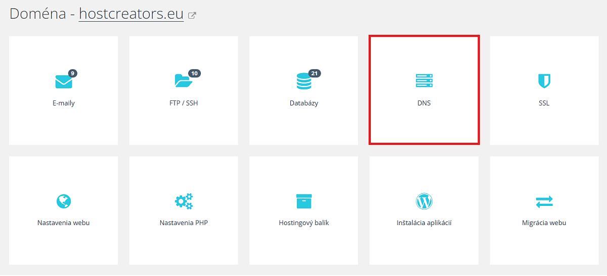 • Zvolíte sekciu: DNS