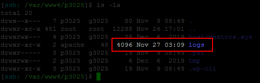 - Cez SSH – U nás si musíte najprv vytvoriť SSH účet a následne sa prihlásiť cez konzolu (Pre Windows dporúčame PUTTY) do SSH. Po prihlásení sa dostanete do koreňového adresára. Príkazom cd logs sa dostanete do adresára logs. Ďalej vypíšte obsah priečinku logs príkazom ls –la. Príkazcat [názov logu](napr. "cat php_7.4_error.log") vypíše všetko čo obsahuje konkrétny log súbor.
