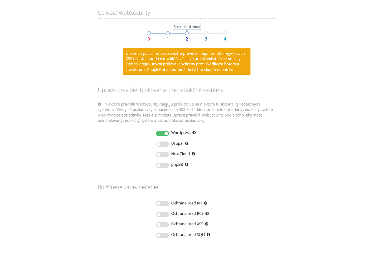 Detailné informácie o nastaveniach sa dozviete v nastavení WebSecurity.